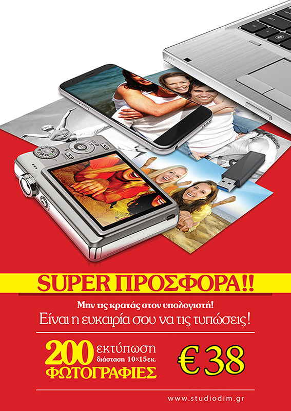 Χρησιμοποίησε την super προσφορά μας και εκτύπωσε 200 φωτογραφίες σε διάσταση 10Χ15 εκ., μόνο με €38!